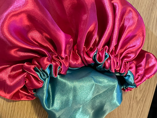 Hot Pink Satin and Aqua Satin Reversible Bonnet